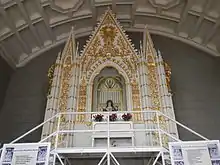 The reliquary is laid open for public veneration every August 17. St. Rita of Cascia (1381) was born in the Italian town of Roccaporena. When her husband and twin sons died, she entered the Augustinian Nuns. The next 40 years of her life saw St. Rita devoting herself to a life of prayer, and works and deeds of charity as dictated by the rules of St Augustine. At age 60, while meditating before the cross, a wound seeming afflicted by a thorn appeared on her forehead. St. Rita began boring the sign of stigmatization which is considered being one with Jesus. Because of the stigmata, she suffered in pain for the next 15 years which she courageously accepted. St. Rita died on May 22, 1457. Her intact and incorrupt body is kept and honored in the shrine at her hometown on Cascia, Italy.[24][25][26][27]