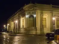 Santa Tecla has many examples of neo-classical architecture. One of them is the Palace of Fine Arts (Santa Tecla Municipal Palace). It is estimated that this building was built in 1911 for residential purposes. Later the property became part of the municipality as a way to cancel a debt and the building became the offices of the municipal council. Considered a Santa Tecla landmark this eclectic building with 17 rooms, imposing columns and a central courtyard reflects several architectural styles, among them: neo-gothic, neo-romantic, neo-renaissance and neo-vicentine. It is assumed that much of the infrastructure in Santa Tecla's early years is the work of architect José Jeréz, who is responsible for this Municipal Palace and several other buildings like “Hogar del Niño Adalberto Guirola” El Carmen Church, The Guirola House, the former Santa Tecla Penitentiary (now MUTE museum). Over the years, this building deteriorated by weather and natural disasters. In January 2001 a major earthquake struck El Salvador seriously damaging this building. However, the municipality with the help of the Government of Andalucía in Spain, began restoration work to preserve this architectural masterpiece. In October 2008 the work was concluded and the building became The Municipal Palace of Fine Arts in order to establish an artistic home for children, youth and adults.