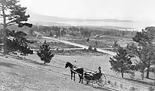 In 1889, Chinese workers began make the ground level at the end of the railway line. In April 1889, Duckworth placed an announcement in the local newspapers for the sale of Carmel lots, highlighting the advantages of the lots, access to the Southern Pacific railroad.[2] Chinese and Hispanic laborers cleared shrubs and marked off the lots. Cottages were built and business were started.[15]: p93 [3]: p15