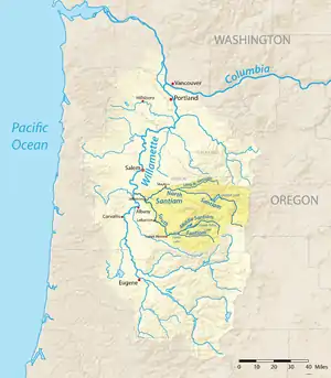 ![]() Map of the Willamette River watershed with the Santiam River highlighted | |