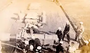 ![]() "After the first shot has been fired. USS Columbia" | |||||||