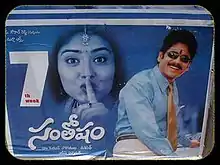 Santosham (transl. Happiness) is a 2002 Indian Telugu-language comedy drama film directed by Dasaradh who co-wrote the film with Gopimohan and Trivikram Srinivas. It stars K. Viswanath, Nagarjuna Akkineni, Shriya Saran, Prabhu Deva, and Gracy Singh (her Telugu debut). The music was composed by R. P. Patnaik.[1][2][3] The film won two Nandi Awards and two Filmfare Awards South.