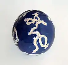 During the fall of 1968, she met Piotr Kowalski. In the spring of 1969 she obtained a studio at the Cité International des Arts in Paris, where she continued to cast resin, and she met artists and critics including Erró, Alain Jouffroy, Frank Popper and Aline Dallier and, later, James Lee Byars, Henri-Alexis Baatsh, Jean-Christophe Bailly, Meret Oppenheim and Joan Mitchell.[7] Official recognition crystallized when Pierre Gaudibert organized her first individual exhibition[8] at l'ARC (Paris, 1971), a prestigious venue for contemporary art. The exhibition included " Little Rainbow Snakes ", a 2-meter Cone, some large spheres, two large " Lenses " with resin spheres cast inside, a big Rainbow Snake, and several tear drop shaped prisms : all polyester resin work.[9]
