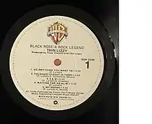 ![]() Label of an early pressing of Black Rose featuring the title "My Sarah" | ||||