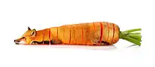 Her first major photo-manipulation project, "Animal Food", was featured on sites and in papers such as The Guardian,[15] TIME,[16] VICE Creators Project,[17] and Mashable.[18] It also appeared on multiple art blogs such as Design Taxi,[19] Toxel[20] Lost at E Minor,[21] Acclaim Mag,[22] and the Creative Review.[23] This project features the unlikely combination of images of animals with sliced up fruit and vegetables. In an interview, she stated that she "noticed the potential for a series stemming from an interesting juxtaposition between live animals and produce, rather than just different animal species. I found the combination of forms interesting and realized that it made a visually strong image that people would have strong opinions about. A lot of the project was a study in color and negative space, as well as creating a cohesive image through hybridizing, but I also just enjoyed creating something both amusing and potentially thought provoking." When questioned as to whether or not the series was created as a statement on meat consumption, she noted that she "didn’t specifically create the series to be commentary on meat eating or vegetarianism. I have always enjoyed making pieces that were visually strong on their own, but also thought provoking and open to interpretation. I never create art to force my own view, but use it to inspire people to think about their own. Some have gone as far as to refer to "Animal Food" as "Photoshopped fruit-animals that make meat vegan-friendly", while others have simply called it "disturbing". I’m just happy to inspire discussion of any sort."[24] DeRemer was also interviewed about the project on TBS eFM,[25] an English radio station in Seoul. In 2016, an article by VICE Creators Project, entitled "Dalí, Warhol, and the Lip-Smacking Legacy of Artists and Food", stated that "Sarah DeRemer's series of critter-produce photo manipulations, Animal Food, offers viewers insight in blending the dichotomy between the flora and fauna we consume.".[26]