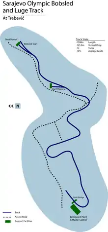 Sarajevo Olympic Bobsleigh and Luge Track is a bobsleigh and luge track situated on Trebević mountain overlooking the City of Sarajevo, built for the 1984 Winter Olympics.