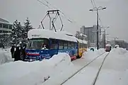 Trams stopped running due to heavy snowfall, at Marijin Dvor on February 5, 2012