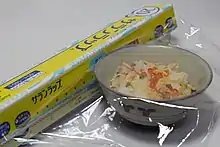 Saran is a trade name used by S.C. Johnson & Son, Inc. for a polyethylene food wrap. The Saran trade name was first owned by Dow Chemical for polyvinylidene chloride (PVDC), along with other monomers. The formulation was changed to the less effective polyethylene in 2004 due to the chlorine content of PVDC.[1][2]