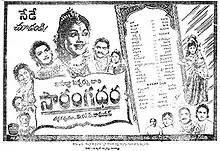 Sarangadhara is a 1957 Indian Telugu-language historical drama film, produced by T. Namadeva Reddy, directed by V. S. Raghavan and K. S. Ramachandra Rao. It stars P. Bhanumathi and N. T. Rama Rao with music composed by Ghantasala. The film is based on the epic of the same name by Gurajada Apparao.[1]