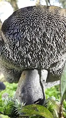 Sarcodon thwaitesii fruits on the ground in mixed forest. It is found in Asia, Europe, and New Zealand.[7]