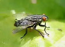 Sarcophaga is a genus of true flies and the type genus of the flesh-fly family (Sarcophagidae). The members of this cosmopolitan genus are frequently known as common flesh flies.