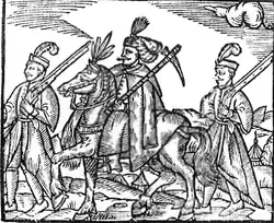Lithuanians and Ruthenians living within the Commonwealth also adopted certain aspects of Sarmatism.[38] Some Lithuanian historians of that time claimed that their people were descended from Scythians who had settled in ancient Rome, which had become the home of their pagan high priest.