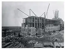 The design contemplates expansion of the building by the addition of wings extending south from the east and west ends and coming together to form a courtyard. The plans originally called for the exterior of the building to be red brick but after construction had begun and red bricks were already on the site, Premier Walter Scott decided that Manitoba Tyndall stone would give the building greater grandeur and the plans were adjusted with the substitution increasing the building cost by $50,000.[3] The total cost of construction came to $1.75 million by the time of its opening in October 1912, ten months after the assembly had begun meeting in the yet-uncompleted building.