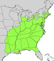 Sassafras albidum (sassafras, white sassafras, red sassafras, or silky sassafras) is a species of Sassafras native to eastern North America, from southern Maine and southern Ontario west to Iowa, and south to central Florida and eastern Texas. It occurs throughout the eastern deciduous forest habitat type, at altitudes of up to 1,500 m (4,900 ft) above sea level.[3][4][5] It formerly also occurred in southern Wisconsin, but is extirpated there as a native tree.[6]
