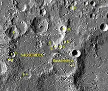 By convention these features are identified on lunar maps by placing the letter on the side of the crater midpoint that is closest to Sasserides.
