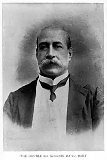 Sir Sassoon Jacob Hai David, 1st Baronet, KCSI (11 December 1849 – 27 November 1926) was an Indian merchant who was a member of the community of Baghdadi Jews who lived in Bombay from the late 19th Century into the 20th Century. He was a textile mill-owner and merchant who also became Chairman of the Bank of India.