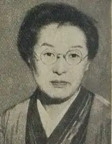 In 1945, with the end of the Pacific War, she divorced her husband Kubokawa.[3] In 1946, she rejoined the JCP, although, as before, she often voiced vehement criticism of the party. Also in 1946, she was one of the founding members of the Women's Democratic Club, along socialist politician Shizue Katō and intellectuals like Setsuko Hani and Yuriko Miyamoto.[13] Her wartime experiences were the subject of Watashi no Tōkyō chizu ("My Tokyo Map"), which was written between 1946 and 1948. 1953 saw the first post-war reprint of Crimson, which was received favourably by critics.[1] In 1954, she wrote Kikai no naka no seishun ("Youth among the Machines"). The first collection of her works was issued in 15 volumes in 1958–59. She would write Onna no yado ("Women's Lodgings") in 1963 and Omoki nagare ni ("On a Heavy Tide") in 1968–69.[3]