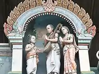 Arunagirinathar was a 15th-century Tamil poet born in Tiruvannamalai. He spent his early years as a rioter and seducer of women. After ruining his health, he tried to commit suicide by throwing himself from the northern tower of Annamalaiyar Temple, but was saved by the grace of god Murugan.[22] He became a staunch devotee and composed Tamil hymns glorifying Murugan, the most notable being Thirupugazh.[23][24] Arunagirinathar visited various Murugan temples and on his way back to Tiruvannamalai, visited the temple and sung praises about Murugan in the temple.[25]