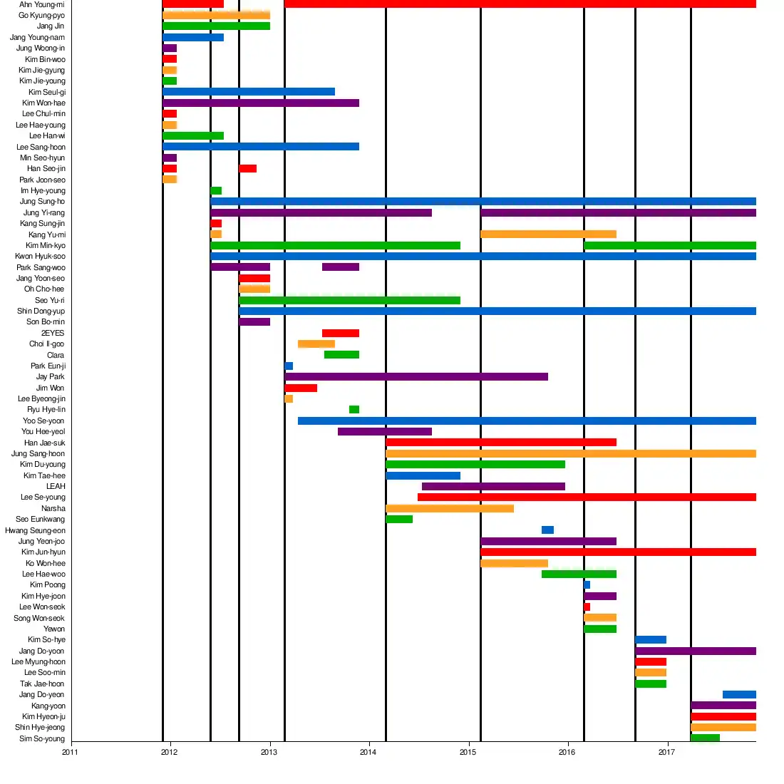 Narsha and Seo Eun-kwang (BtoB) joined as regular cast members, while Clara exited the program. Weekend Update was discontinued, and replaced by a mini-talk show hosted by You Hee-yeol.[16]