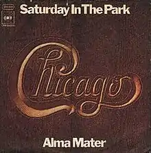"Saturday in the Park" is a song written by Robert Lamm and recorded by the group Chicago for their 1972 album Chicago V. It was very successful upon release, reaching No. 3 on the Billboard Hot 100,[4] and became the band's highest-charting single at the time, helping lift the album to No. 1.[5] Billboard ranked it as the No. 76 song for 1972. The single was certified Gold by the RIAA, selling over 1,000,000 units in the U.S. alone.[6]