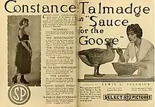 Sauce for the Goose is a 1918 American silent comedy film directed by Walter Edwards and starring Constance Talmadge, Harrison Ford, and Vera Doria.[1]
