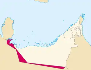 Lastly, the UAE directly disagreed with Article 6 of the treaty, which stipulated that an international company would be required to prepare an official map to reflect the current boundaries between the two countries. The UAE continued to use the older version of the map which did not conform the Treaty of Jeddah, showing Khor al Udaid and the location of the Zararah oilfield as UAE territory as far till 2009.[31] This caused a problem with UAE citizens entering Saudi Arabia in August 2009 who were using their ID cards as the card showed the original map and Emirati citizens who tried to enter Saudi Arabia with their ID cards were turned back at the border.[32]