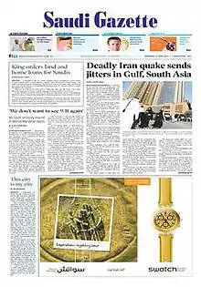 ![]() Saudi Gazette cover (17 April 2017) | |
