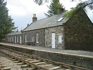 The line was closed to passengers by British Railways in October 1956[2] and completely two years later. The station had a single platform, a stone-built station building, and a siding.