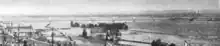Shot of the rail bridge in 1905, showing the 10 original Warren truss spans. The highway bridge has not yet been built.