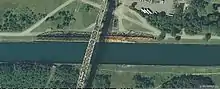 ![]() The Railroad Bridge runs parallel to the highway bridge, and is the bridge on the left in the image. | |