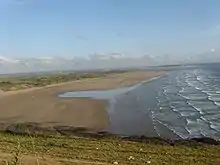 Saunton Sands is a beach near the English village of Saunton on the North Devon coast near Braunton, popular for longboard surfing.[1] Beyond its southern end, Crow Point, England is the mouth of the River Taw estuary.[2] It is part of the Taw-Torridge estuary Area of Outstanding Natural Beauty and is at the centre of the UNESCO-designated North Devon's Biosphere Reserve, where Braunton Burrows lies at the heart.
