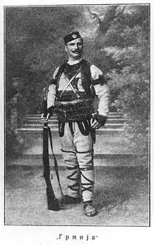 ![]() Sava Grmija in Chetnik gear, between 1906 and 1908. | |