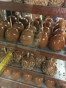 Around 2008, Jennifer and Tim broke the silence and began communicating with their father.[2] Seven years later, Savannah's Candy Kitchen and River Street Sweets merged brand names. The first franchise location opened at the Tanger Outlet Mall in Pooler, Georgia.[4] As of 2016, sales of the combined entities were $35 million.[2][7] They make 4,000 pounds (1,800 kg) of pralines a day (the most in the United States), and between 5,000 pounds (2,300 kg) and 7,000 pounds (3,200 kg) of candy per day in total.[2] Some products were not a success, including chocolate-covered bananas.[2]