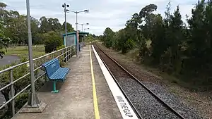 Sawtell has one platform. Each day northbound XPT services operate to Grafton, Casino and Brisbane, with three southbound services operating to Sydney.[3] This station is a request stop, so the train stops only if passengers booked to board/alight here.