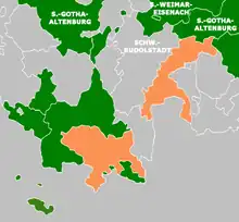 ![]() Saxe-Coburg-Saalfeld, shown among the other Ernestine duchies | |||||||||||||
