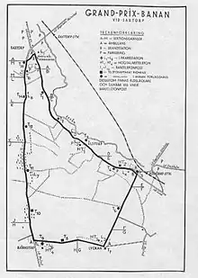 The Saxtorp TT-races were international motorcycle races, reminiscent of Isle of Man TT and held in Saxtorp, 10 km (6.2 mi) south of Landskrona in Scania, southernmost Sweden. The races were held in August every year during the 1930s. The official name was Sweden Grand Prix, but they were labeled "TT-lopp" in Sweden.[1][2] The first race was held on 31.August 1930 and the last race was decided on 6.August 1939.[3] The Second World War prevented further races. Axel Löfström was the "general" around the events.[4]