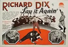 Say It Again is a lost[1] 1926 silent film comedy-romance produced by Famous Players-Lasky and released through Paramount Pictures. It starred Richard Dix and was directed by Gregory La Cava.[2][3]
