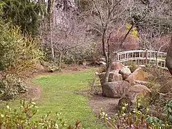 The Sayen site became municipal property in 1988, when Hamilton Township purchased the site from developer David Cellars. The park was opened to the public in 1991. The township expanded and improved the park in 2003.[1] Today the garden contains more than 1,000 azaleas, nearly 500 rhododendrons, and more than 250,000 flowering bulbs for spring display, as well as ponds, bridges, gazebos, and walking trails.