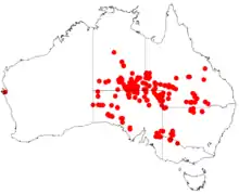 Skeleton fan-flower grows on sand dunes and sandy soils in mallee in South Australia, Victoria, Northern Territory, New South Wales and Queensland.[3][9]