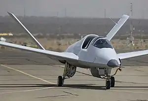 The Model 401 is a single-seat experimental prototype of broadly conventional configuration. The pressurized cockpit is enclosed by a bubble canopy and the plane incorporates a single jet engine and retractable tricycle landing gear.[1]