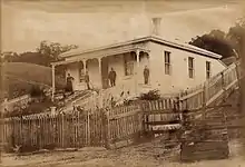 Scandrett named the now 52 acre farm Lisadian after his home townland in Ireland and gradually brought it into production.[6] The oldest building still on the park is the barn built in 1864 which was used to store hay, saddles and farm equipment, and also doubled as a community hall.[7] In the 1870s, a Norfolk pine, which as of 2019 is still growing on the park, and oak and plane trees, gifts from George Grey were planted next to the barn. The family lived in the wooden cottage built by Garland for 22 years, and it was the birthplace of their nine children. In time, they purchased the western end of the bay, growing the property to 110 acres.[3]