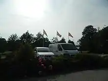 Typical use of the Scanian flag. Here at the parking lots outside a café & confectionery, in order to attract more customers.