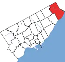 ![]() Scarborough-Rouge Park in relation to the other Toronto ridings (2015 boundaries) | |||
