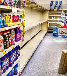 Another example of the effects of scarcity is the phenomenon of panic buying, which drives people to display hoarding behaviors when faced with the possibility of going without a certain product.[6] Historically, panic buying was seen during the COVID-19 pandemic in 2020. Due to the pandemic, people panic bought toilet paper out of fear of limited product supply, creating a shortage.