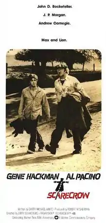 Scarecrow is a 1973 American road movie directed by Jerry Schatzberg and starring Gene Hackman and Al Pacino. The story involves the relationship between two men who travel from California seeking to start a business in Pittsburgh.