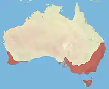 The scarlet robin is endemic to Australia, where it is found near the coast from southern Queensland to central South Australia, Tasmania and southwest Western Australia. The species is mostly sedentary over its range, but some mainland populations undergo small local movements in the autumn and winter, either to more open habitats or to lower elevations.[5]