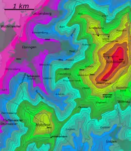 The Schönberg (earlier known as Schirnberg) is located on the southern outskirts of Freiburg im Breisgau and at 644.9 meters[1] above sea level the Hausberg (a prominent mountain) of the municipality of Ebringen.