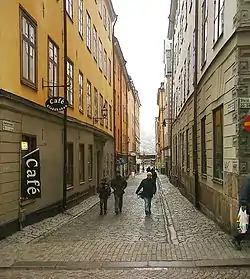 Schönfeldts Gränd (Swedish: "Alley of Schönfeldt") is an alley in Gamla stan, the old town in central Stockholm, Sweden. Stretching south-west from Stora Nygatan to Mälartorget it is crossed by Lilla Nygatan and Munkbrogatan, and forms a parallel street to Kåkbrinken and Lejonstedts Gränd.