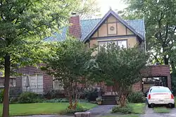 The Schaer House is a historic house at 1862 Arch Street in Little Rock, Arkansas. It is an asymmetrical two story brick house in the Tudor Revival style, designed by Thompson and Harding and built in 1923. Its main roof extends from side to side, with a hip at one end and a gable at the other. On the right side of the front facade, the roof descends to the first floor, with a large half-timbered cross gable section projecting. It also has an irregular window arrangement, with bands of three casement windows in the front cross gable, and on the first floor left side, with two sash windows in the center and the main entrance on the right.[2]