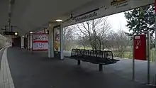 It was constructed by B. Grimmek in 1958. Due to the extension of the U6, the trains had to go above ground after Kurt-Schumacher-Platz station. Soil for the embankment on which the line is built came from excavations for the U9, which was being built in parallel.